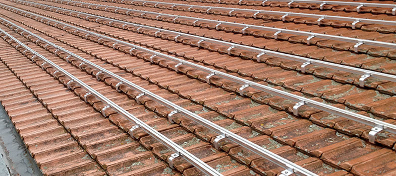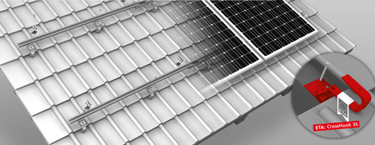 Sistemi i montimit CrossRail për modulet fotovoltaike është i përshtatshëm për mbulim me tjegulla dhe asbest ose llamarine të valëzuar. Përndryshe, ka grepa për çati me pllaka prej betoni dhe çati me panele çeliku.